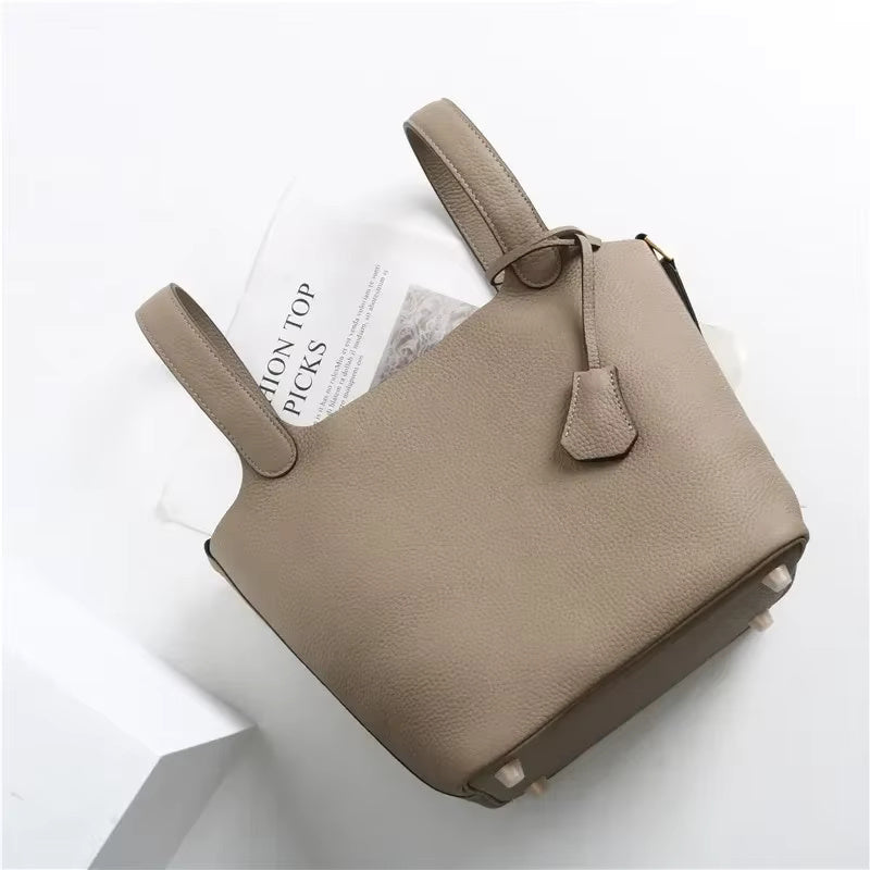 Crafted from premium leather, the handbag exudes sophistication and durability. The material has a finely textured surface that not only enhances its visual appeal but also makes it resistant to wear and tear. Soft yet sturdy, the leather maintains its shape over time while offering a luxurious feel. Its neutral tone makes it versatile, allowing it to pair effortlessly with various outfits. The use of high-quality leather ensures longevity, making the handbag a timeless investment.