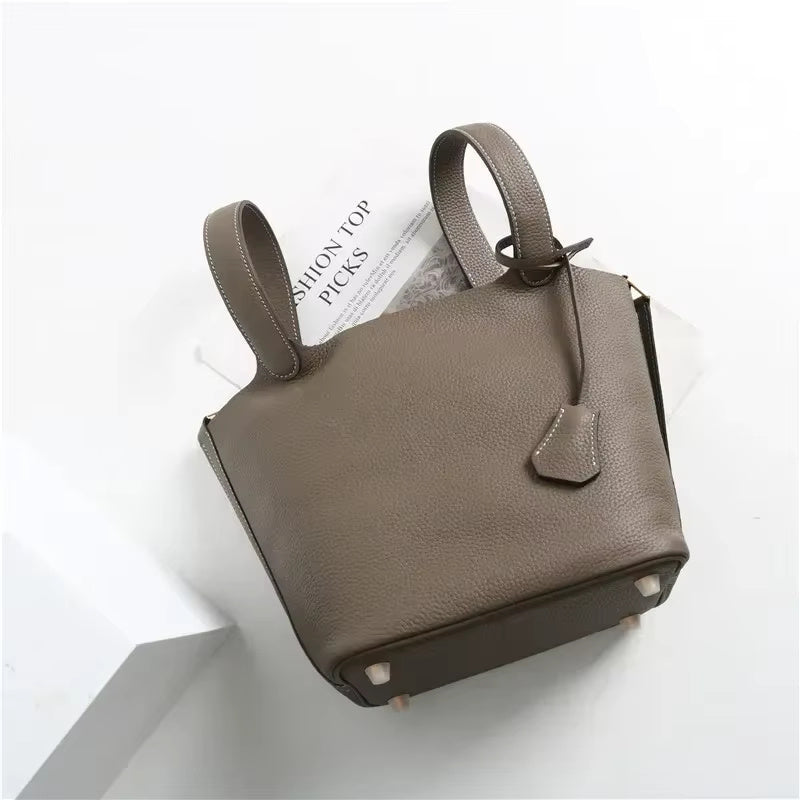 Crafted from premium leather, the handbag exudes sophistication and durability. The material has a finely textured surface that not only enhances its visual appeal but also makes it resistant to wear and tear. Soft yet sturdy, the leather maintains its shape over time while offering a luxurious feel. Its neutral tone makes it versatile, allowing it to pair effortlessly with various outfits. The use of high-quality leather ensures longevity, making the handbag a timeless investment.